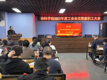3月17日下午,动物科学学院2025年度工会会员暨教职工大会在格物楼406学术报告厅召开。全院教职工出席,会议由学院党委书记、工会主席孙德刚主持。
