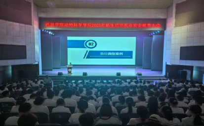 为进一步增强我院学生的安全防范意识与自我保护能力、应急处置能力,筑牢校园安全屏障,营造平安和谐的育人环境。9月10日,动物科学学院在学生活动中心组织开展了2025年新生安全教育培训会。会议以防诈反诈与实验室安全为核心主题,邀请西昌学院驻校民警崔应元、动物科学学院实验实训室主任常卫华教授分专题进行讲授,动科学院2025级新生(包括专升本学生)645人参加培训,动物科学学院党委书记孙德刚主持培训会。