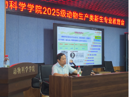 在动物生产类新生专业教育会上,院长黄志秋教授以《在大学成为最好的我们》为题,为动物科学专业和智慧牧业科学与工程专业新生进行专业教育。他回顾了学院的发展历程、专业设置、师资结构、教学平台与科研成效,展示了学院的学科积淀与育人资源。之后又围绕“认知大学、适应大学、提升能力”三方面,引导新生做好学业与生涯规划,勉励大家心怀感恩、勇担强农兴农使命。