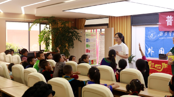图为推广普通话实践队与孩子们进行课堂互动。文金月 供图