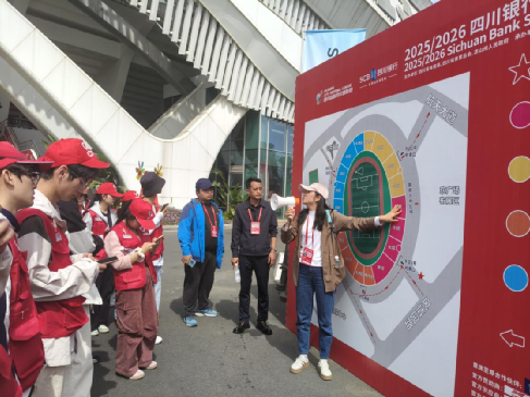 比赛当天,144名志愿者早早抵达凉山民族体育场,迅速奔赴各自岗位,开启全流程保障工作。在赛场入口,他们耐心引导观众检票入场、解答观赛咨询,提醒观众注意安全事项,用热情的笑容化解观众的疑惑;在看台区,他们定岗值守、维护现场秩序,及时劝阻不文明观赛行为,保障观赛环境有序和谐;在赛场内,他们负责物资搬运、场地保障、球员与工作人员后勤协助等工作,确保赛事物资供应及时、场地设施运行正常;在赛后,他们又主动参与场地清理、人流疏导等收尾工作,直至所有观众安全离场、赛场恢复整洁。