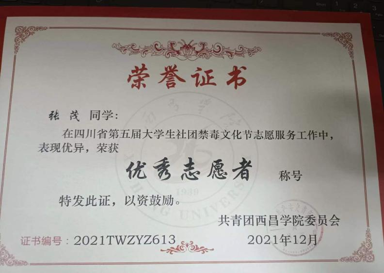 张茂 女,2021级环境科学与工程专业,获得的奖项:获得四川省第五届大学生社团禁毒文化节优秀志愿者。 我的家乡宜宾是一个历史悠久,文化丰富的城市,是长江、金沙江、氓江的二江汇合之地,拥有量南竹海、石城山、越溪河,五粮液,李庄古镇等景点。叙州区,又名焚道,是四川省宜宾市市建区。位于四川盆地南缘,长江上游,金沙江、氓江下游,川滇两省结合部;地形南北长、东西窄,地势西南高、东北低,西部为大小凉山余脉,南部为云贵高原北坡,东北属盘中方山丘陵区。宜宾市有着“万里长江第一城”的美称。筠连县拥有“筠商、玉壶井、苗族大唢呐、苦丁茶、五尺道”五大文化名片;享有“中国苦丁茶之乡”“中国奇泉之乡”“川南煤海”“川红故里”“中国肉牛之乡”等美誉;拥有“筠连红茶”“筠连苦丁茶”“筠连粉条”“筠连黄牛”“筠连筠姜”5个国家地理标志保护产品。今年的第十六届中国宜宾早茶节也是在筠连举行的。最近几年宜宾发展很快,交通越来越方便,各处都已经建起了高速公路,进进出出也是方便了许多。我希望以后可以找一个自己喜欢愿意为之奉献的工作,有自己的生活。做好自己的事,乐于帮助别人,做一名遵纪守法的好公民。也希望在以后的工作中,与人多交流,学习别人的长处,总结自己的不足,努力完善自己。 四川省第五届大学生社团禁毒文化节优秀志愿者 |