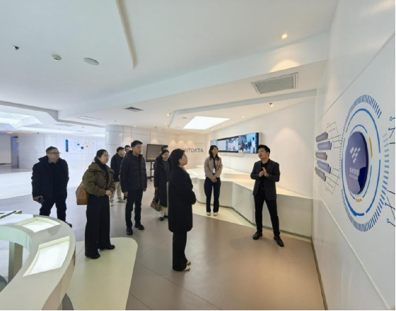 调研伊始,白洁校长一行在美林数据高管的陪同下参观了企业展厅与核心研发工区。企业技术人员现场演示了“产业大脑”技术架构及其在西安高新区数智服务平台中的实际运营情况,生动展现了美林数据在数据治理、人工智能应用、产业数字化服务等领域的技术实力与项目经验。