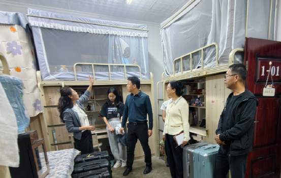 走访过程中,学院领导逐一走进北学10栋和北学4栋各学生宿舍,与同学们亲切交谈,详细询问学业进度、职业规划、日常生活等情况,认真倾听学生诉求,对现场可解决的问题立即协调处理。李思书记着重叮嘱同学们,要严格遵守宿舍管理规定,注意用电安全、保持寝室整洁、合理安排作息,以健康的身心和积极的状态投入学习生活。