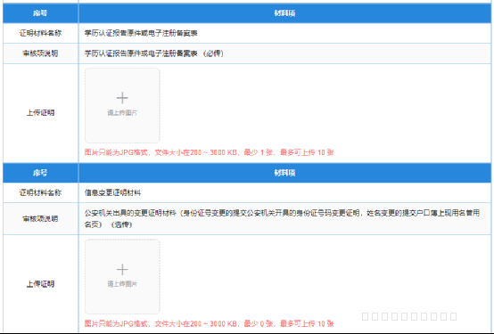 其中2001年以后毕业且学信网已注册学历的考生,必须通过学信网APP进行扫码授权验证学历,其他三类考生根据系统指引上传材料,进行人工审核。