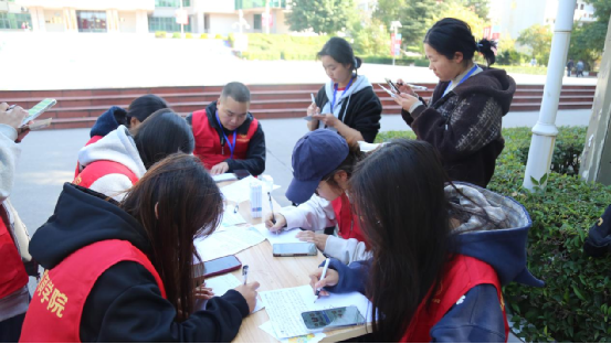 此次活动由学生志愿团队主导,为了让感恩理念更加深入同学们的心灵,志愿者们化身“校园暖心使者”,写下感恩之语,用彩笔绘画出一张张感恩彩画,积极向过往的同学们详细宣讲关于感恩的理念,传递感恩之心以及此次活动的具体流程,并主动邀请同学们参与到感恩活动中,如写下自己的感恩语录感恩自己的家人、朋友或老师等或用彩笔绘制关于感恩的明信小卡片。在此之后,志愿团队还准备了一些小奖品盲袋赠送给同学们,增强了同学们的活动参与感和获得感,活动现场洋溢着温暖和谐的氛围。