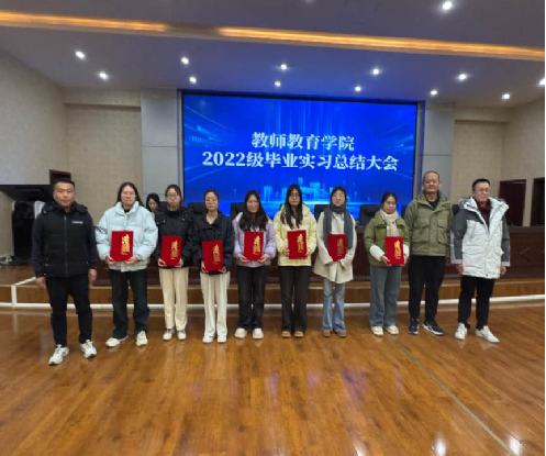 最后,学院领导和实习指导教师为表现突出的优秀实习生颁发了奖状,并合影留念。此次总结大会不仅是对过去近四个多月实习活动的回顾,更是对师范专业人才培养工作的反思。通过总结,学院将进一步完善教育实习的管理机制,提升指导教师的能力,推动师范专业的持续发展。