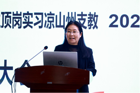 叶俊莉代表学校,向所有投身顶岗支教的同学、支持此项工作的领导及教师致以诚挚感谢!