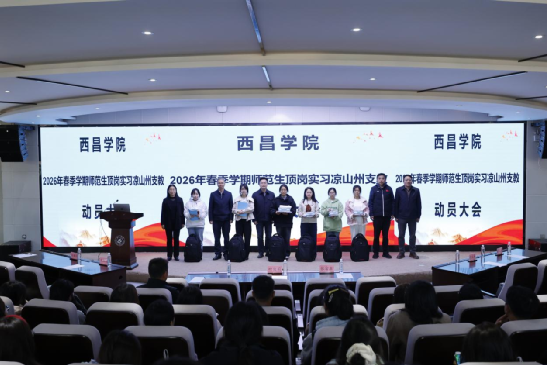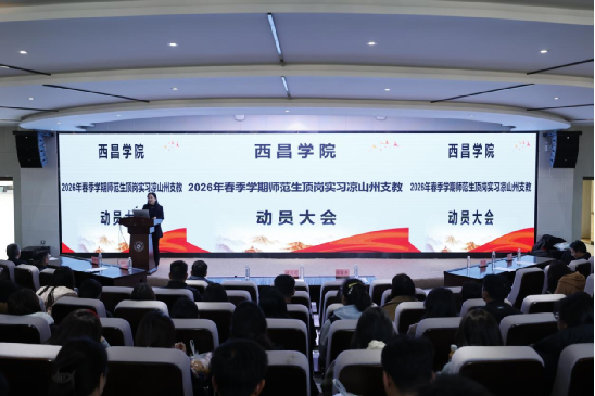 3月11日,西昌学院2026年春季学期顶岗支教工作动员大会,在安宁校区致知楼环形学术报告厅举行。学校教务处处长叶俊莉及相关二级学院领导参加会议。会议由教务处实践教学科科长周鹏宇主持。