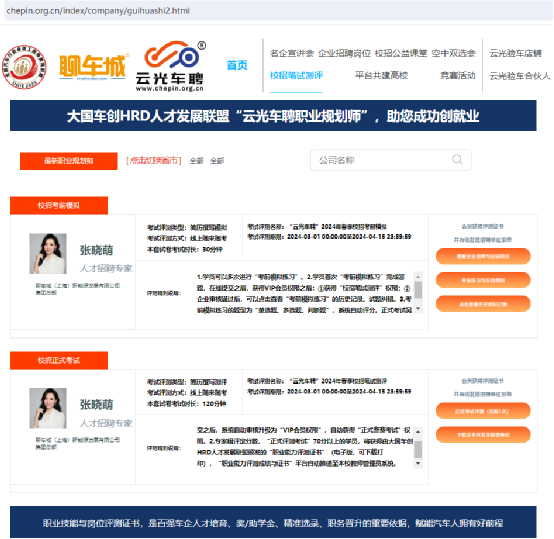 2024年1月-3月,团队教师指导学生登录“云光车聘”平台求职者账户,通过平台“校招笔试测评”参加校招车企的在校应聘笔试、职业能力测评。同时,也为学生求职过程中的笔试环节,提供专业的培训辅导,通过模拟题库、在线测评等方式,帮助学生熟悉笔试流程,提高应试能力。