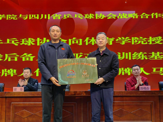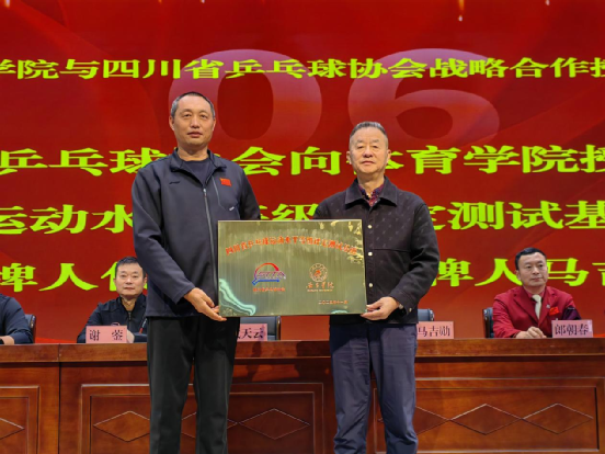 在全体与会人员的共同见证下,四川省乒乓球协会向西昌学院体育学院授予四块牌匾,分别为:“四川省乒乓球运动水平等级评定测试基地”“四川省青少年乒乓球后备人才亚高原训练基地”“四川省乒乓球裁判员培训基地”及“四川省乒乓球教练员培训基地”。授牌环节标志着双方合作正式启动,未来将携手推进乒乓球人才的全方位培养与社会服务推广。
