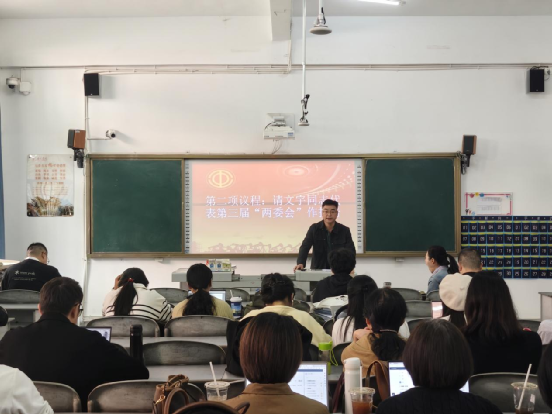 会议在庄严的国歌声中拉开序幕。文宇代表外国语学院第三届“两委会”作工作报告,回顾过去五年在思想政治引领、职工权益保障、文体活动开展、民主管理及服务学院发展等方面取得的成效,分析工会工作存在的不足与体会,并为分工会今后工作提出了建议。?