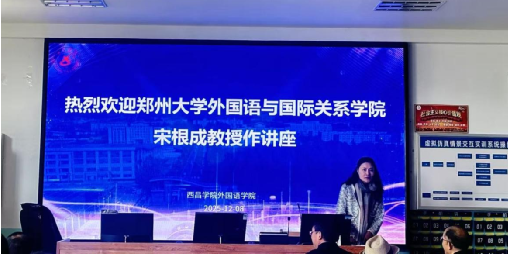 为提升我院教师科研项目申报能力,助力中华学术成果国际传播,2025年12月8日中午,外国语学院特邀郑州大学外国语与国际关系学院宋根成副教授,开展国家社会科学基金中华学术外译项目申报经验专题讲座。本次讲座由外国语学院党委副书记易莉主持,我院全体教师到场聆听。