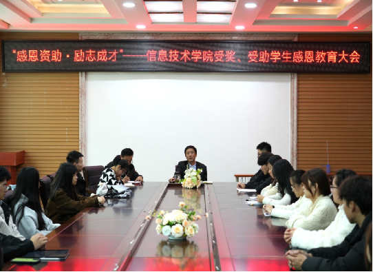 为深入贯彻落实国家资助政策,充分发挥资助育人功效,加强对受助学生的感恩励志教育,引导广大青学生尤其是受助学生常怀感恩之心、树立远大志向、砥砺坚韧品格,11月4日,信息技术学院组织70余名获得2025年国家助学金的学生开展了“感恩资助,励志成长”专题教育活动。会议由学院学生科副科长陈万兵主持,学院党委书记谭时康主讲。