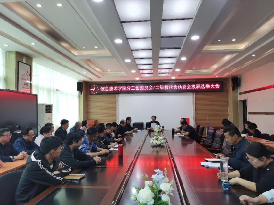 为进一步加强学院分工会组织建设,充分发挥分工会职能作用,2025年10月23日中午,信息技术学院分工会组织全体教职工在致远楼一楼会议室召开换届选举大会,大会由学院党委书记谭时康同志主持。