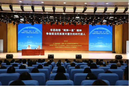 10月16日下午,我校举办“钱学森创新实验班”及航空航天学院揭牌系列活动。在学生事务中心,马兰基地原政委、“两弹一星”历史研究会常务副理事长、中国科学家精神宣讲团成员孔令才将军主讲《学思践悟“两弹一星”精神,争做堪当民族复兴重任的时代新人》主题报告。校党委常委、副院长、关工委主任胡青龙主持,300余名师生代表参加。  孔令才将军从“两弹一星”是什么、怎么来、如何做入手,结合实际案例、经典视频和人物故事,以厚植家国情怀、矢志自立自强、甘于奋斗奉献为主线,带着师生一起回望那个时代,走进那些民族英雄,感悟和体会我们这个国家和民族在20世纪中叶是如何孕育形成“两弹一星”精神的。他深情地讲述戈壁滩上科研工作者“住地窝子、吃沙砾饭、喝苦水浆”的艰苦岁月,他用钱学森、郭永怀、邓稼先、林俊德、钱三强、周光召、程开甲等老一辈科学家艰苦创业、无私奉献的案例,生动诠释了“爱国奉献、艰苦奋斗、协同攻关、求实创新、勇攀高峰”的“两弹一星”精神内涵。他勉励学子以老一辈科学家为榜样,心怀“国之大者”,把个人小我融入国家大我,践行“请党放心、强国有我”的誓言。  报告引发热烈反响。同学们纷纷表示,孔将军的讲述感人至深,让大家深刻理解了“干惊天动地事,做隐姓埋名人”的崇高境界。作为新时代青年,定当以“两弹一星”精神为指引,珍惜韶华,刻苦学习,到祖国最需要的地方建功立业。 此次报告为青年学子点亮了精神灯塔。未来将持续引领学子“以学铸魂、以思明向、以践赋能”,大力弘扬“两弹一星”精神,把个人理想融入强国复兴伟业中去,在未来的人生面对挑战考验时,也像前辈们那样,用忠诚、担当、奉献,在强国建设、民族复兴的宏伟蓝图上,书写属于我们这一代人的荣光! 文:杨六兰 图:党委宣传部高谐林等 一审一校:葛念 二审二校:郑璐 三审三校:杨六兰 |