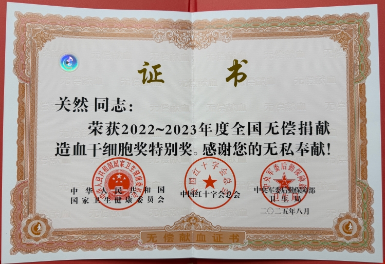 12月11日,2025年全国血液管理工作会议暨全国无偿献血表彰大会在北京召开,会议表彰了全国无偿献血先进个人和集体。全国人大常委会副委员长、中国红十字会会长何维出席会议。国家卫生健康委副主任郑哲,中国红十字会副会长王斌,中央军委后勤保障部卫生局副局长陈春明出席会议并讲话。九三学社西昌学院基层委员会社员关然博士作为先进个人代表上台发言。  关然老师(右4)受表彰  关然老师以“让生命相连,让爱接力”为题,结合自己作为西昌学院教师的身份,分享了捐献造血干细胞和长期参与无偿献血的经历与感悟。她表示,作为一名高校教师,不仅要传授专业知识,更应以身作则,践行社会责任,为学生树立榜样,引导青年学子树立奉献意识、传递爱心力量。她在发言中重点谈到三点体会: 一是践行生命承诺。关然老师于2013年志愿加入中国造血干细胞捐献者资料库。2020年,在得知与一名血液病患者配型成功后,义无反顾地履行了捐献承诺,于2021年初在重庆完成了首次捐献。2022年初,为帮助病情反复的患者,她再次捐献,用实际行动诠释了“生命相连”的深刻含义。 二是坚持无私奉献。除两次造血干细胞捐献外,关然老师长期坚持无偿献血,累计献血达47次,总量17000毫升。她将此视为一种习惯和与社会的温情联结。 三是传递奉献精神。她在发言中强调,个人力量虽微薄,但汇聚起来便能铸就守护生命的钢铁长城。她呼吁更多人加入无偿献血和造血干细胞捐献者行列,用行动点燃生命希望,弘扬“人道、博爱、奉献”的红十字精神。 关然老师的真挚分享,生动展现了我校教师的社会责任担当与高尚道德情操,获得了与会领导与代表的高度评价。  会后,关然老师与其他捐献者代表一同受邀参观了中国造血干细胞捐献者资料库管理中心,深入了解了资料库基于大数据的高效配型、协调调度与捐献服务保障体系。