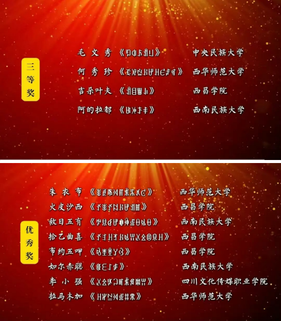 参加本次大赛的作品共计113篇。经评审专家严格评审,最终评选出获奖作品15篇,其中拉吉克阿呷的《??????????》获得一等奖,洛比史日的《????????》等2篇作品获得二等奖,吉朵叶夫的《????》等4篇作品获得三等奖,布约五呷的《?????》等8篇作品获得优秀奖。