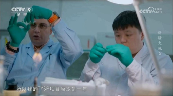 图2 彭聪随 Osama Mohamad 副研究员接受央视采访(右一)