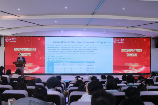随后,Aleksei Ponaryadov教授介绍一种利用碳质还原剂将伪金红石还原为碳化钛和氧碳化钛的方法及其反应机理。他结合自身在矿物资源高值化利用领域的长期积累,阐述了研究背景与目标,介绍了原料选取及热分析、电镜等实验方法,并通过热力学数据与微观形貌图像,生动解析了物相演变与元素迁移机制。Aleksei教授进一步探讨了该技术在功能材料制备与资源清洁转化中的应用前景,并指出天然原料结构对相关工艺的影响。