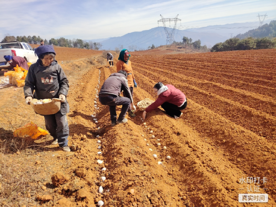 团队成员在昭觉良圆马铃薯种业有限公司高产示范区进行种植示范