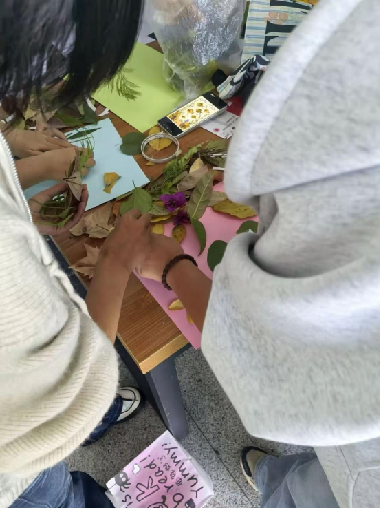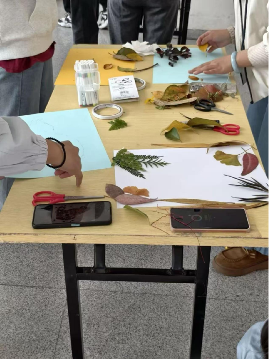 本次活动以落叶为材料,在此次活动中,参与者可以根据自己的创意选择不同的落叶,通过不同的排列方式,将他们粘在一起,创造出自己的秋天。这能充分激发大家的创造力和想象力,让大家在艺术创作中自由地表达自己的想法和情感。选择植物、构思布局的过程中,参与者能不断地接触和感受自然之美、艺术之美,逐渐提高对色彩、形状、纹理等美学元素的感知和欣赏能力,培养独特的审美眼光。
